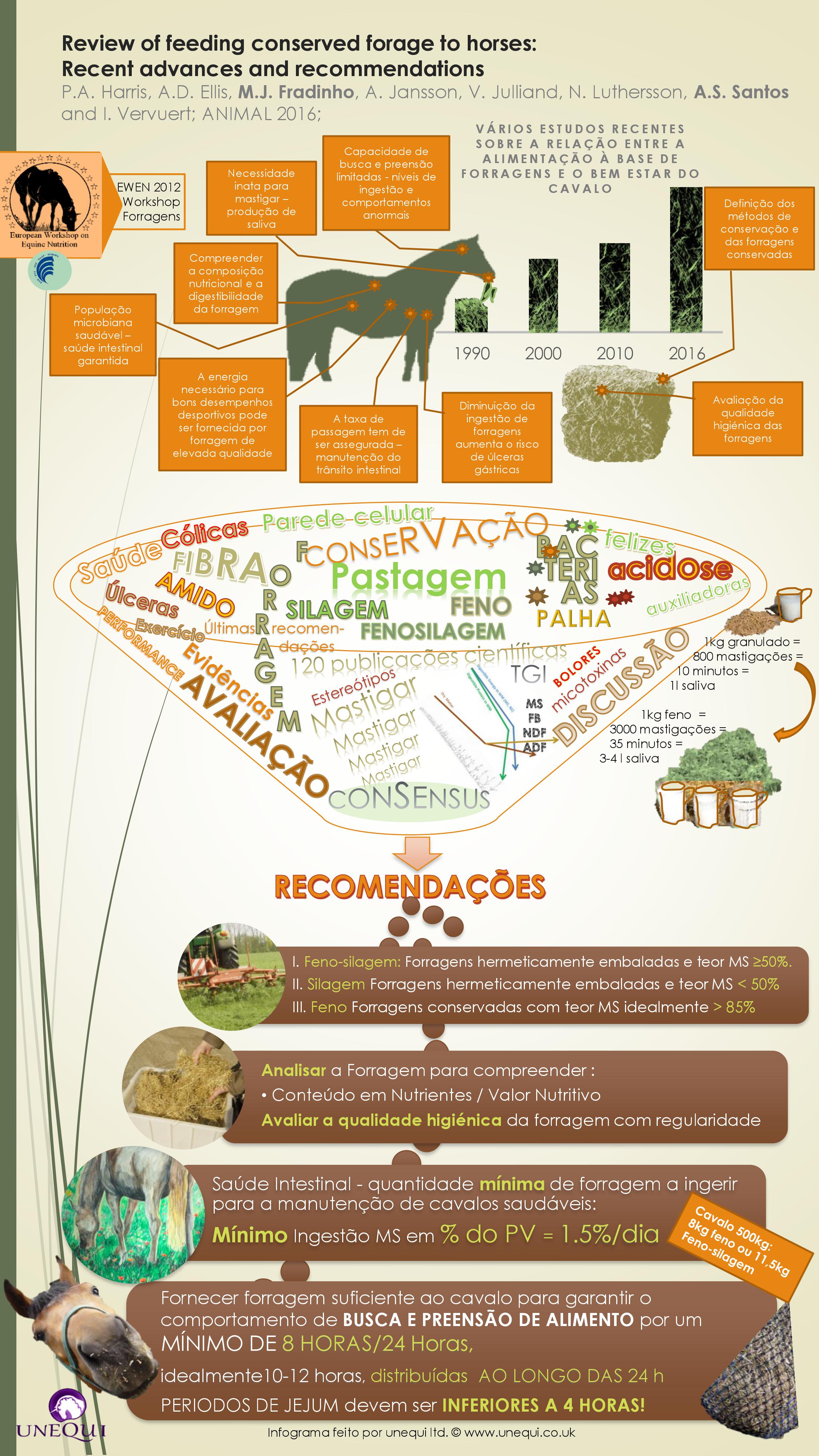 • Quantidade mínima diária de forragem que deve ser fornecida – 1,5% Peso Vivo do cavalo, em kg de Matéria Seca;