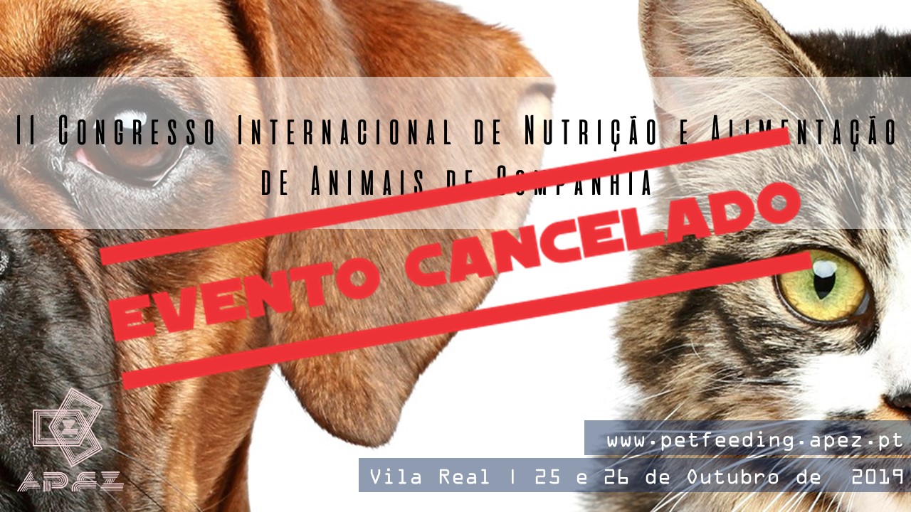 Lamentamos informar que iremos cancelar a 2ª edição do Petfeeding - II Congresso Internacional de Nutrição e Alimentação de Animais de Companhia. A duas semanas do evento não conseguimos reunir um número mínimo de congressistas que consideremos aceitável, para a dignificação da área e dos intervenientes. Não seria honesto para com os palestrantes, para com os nossos patrocinadores e principalmente com os congressistas e os nossos associados avançar com uma iniciativa que não obteve a participação esperada.