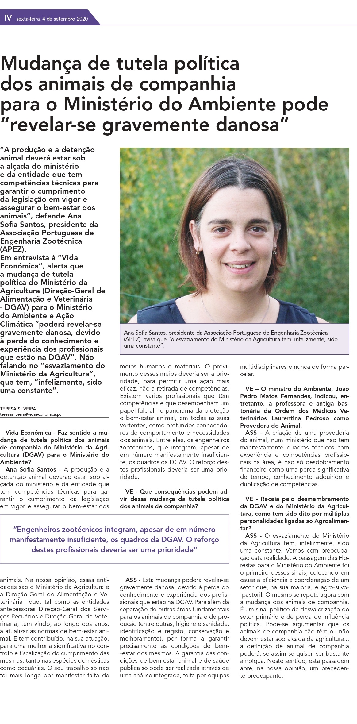 • «Mudança de tutela política dos animais de companhia para o Ministério do Ambiente pode “revelar-se gravemente danosa”.»